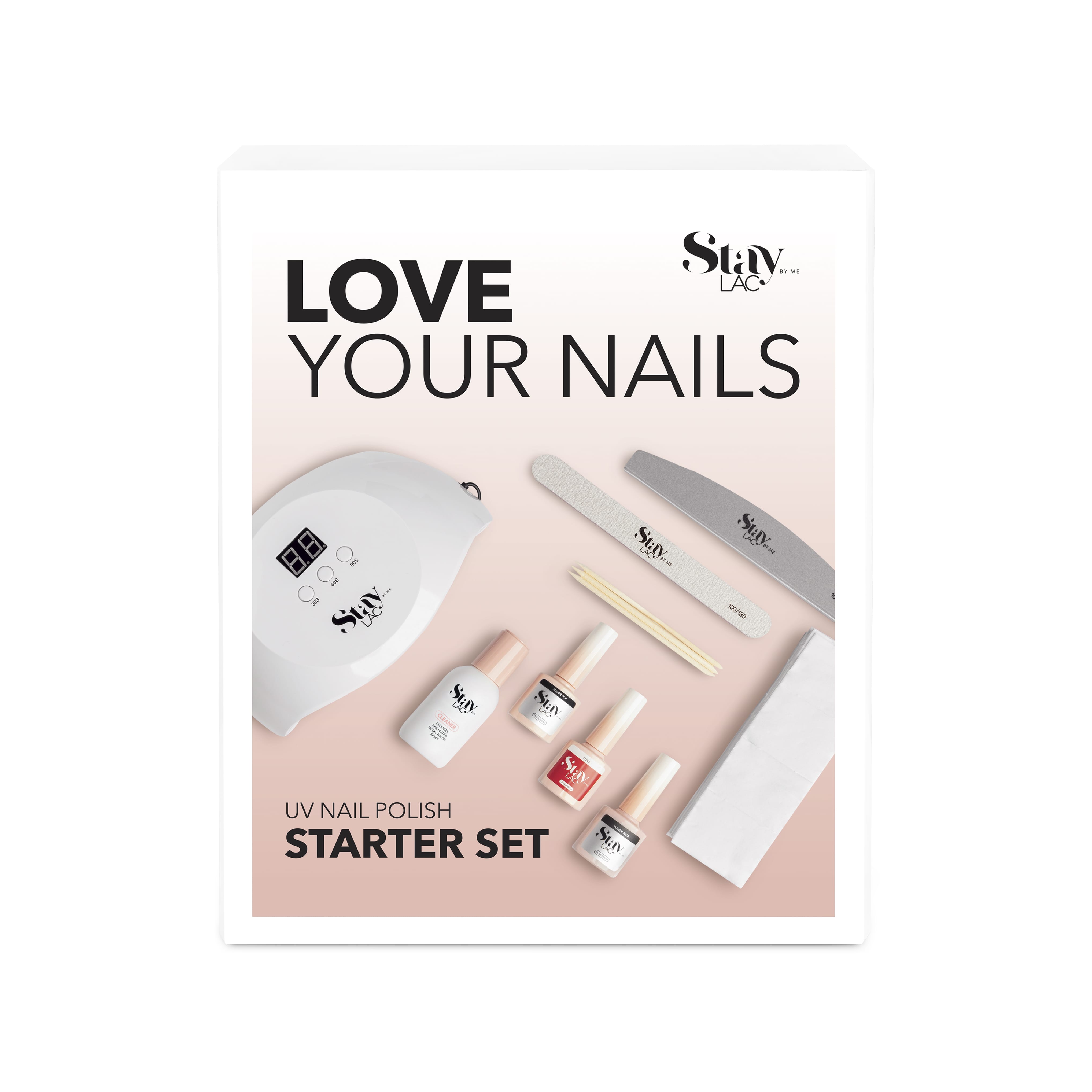 Jesteś nowa w świecie lakierów hybrydowych i nie wiesz, od czego zacząć? Zestaw startowy Love Your Nails marki StayLAC jest właśnie dla Ciebie! W tym zestawie znajdziesz lampę UV, akcesoria do aplikacji stylizacji oraz lakier hybrydowy w cudownym kolorze LOVE. W ten sposób masz idealny manicure i wszystko pod kontrolą przez 21 dni.
